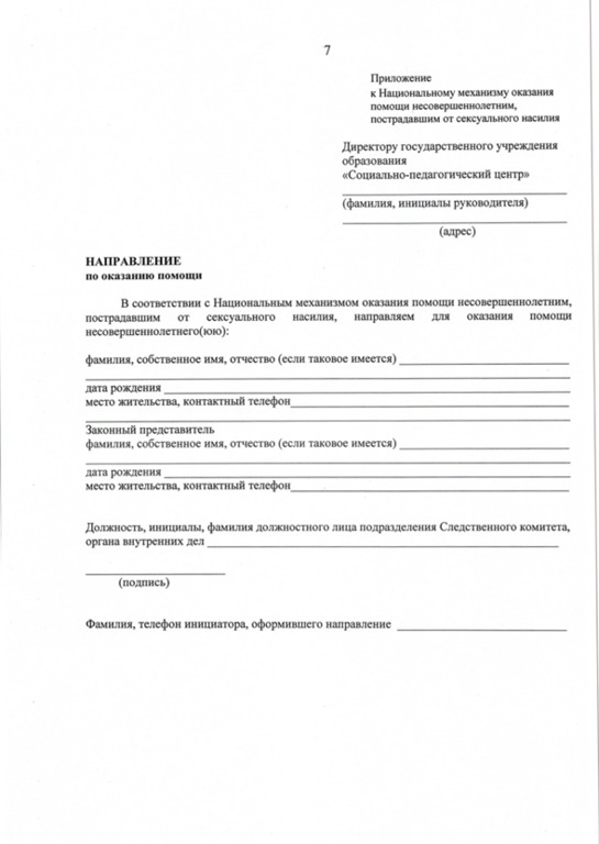 Национальный механизм оказания помощи несовершеннолетним, пострадавшим от сексуального насилия
