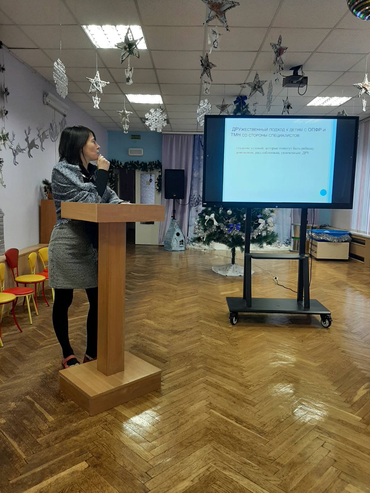 28.12.202328 декабря 2023 года состоялся педагогический совет «Проектные технологии в работе с обучающимися с тяжелыми множественными нарушениями в развитии». Воспитателями центра Вишняковой А.Е., Валевач Н.Н. был представлен богатый теоретический и практический материал по использованию эрготерапевтических приемов гарденотерапии, средств сказкотерапии в воспитательной работе с обучающимися специальных классов. Учителем Новиковой Ю.Н., осуществляющей обучение на дому, был обобщен и представлен опыт по формированию социальной коммуникации обучающихся с тяжелыми, множественными нарушениями в развитии на дому через обучение сиблингов.