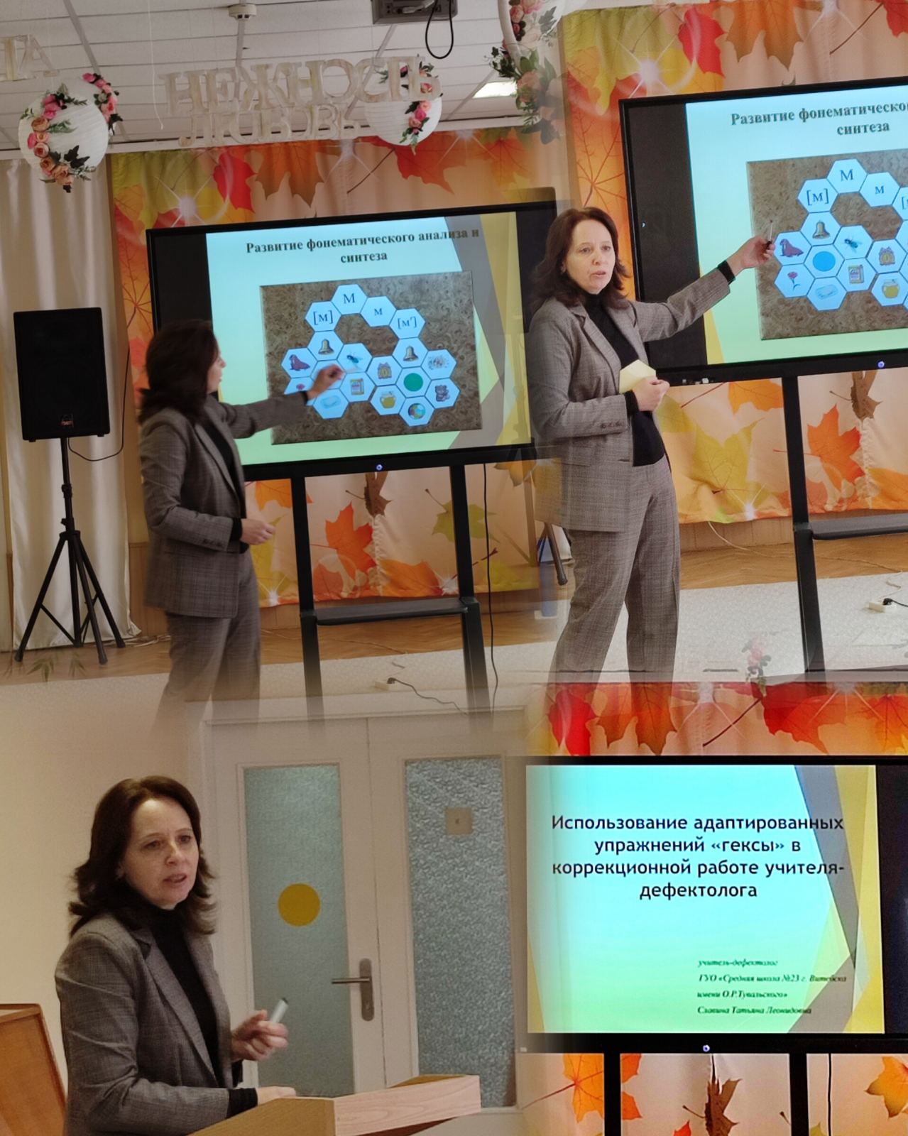 педагог-психолог ГУО «Витебский городской центр коррекционно-развивающего обучения и реабилитации» Хурко Е.И. раскрыла особенности развития детей с синдромом Дауна. Общие подходы к обучению детей с синдромом Дауна осветила учитель-дефектолог ГУО «ВГЦКРОиР» Огризко Л.А.. Практический блок был представлен опытом работы учителя-дефектолога ГУО «Детский сад №45 г.Витебска «Мозаика» по применению пособия «Нумикон» в обучении математике. Использование технологии «скрайбинг» в речевом развитии учащихся с ОПФР осветила учитель-дефектолог ГУО «Средняя школа №45 г.Витебска им. В.Ф. Маргелова» Зуева Ю.А. Опытом применения шестиугольного обучения как одним из приёмов технологии развития критического мышления в системе формирования функциональной грамотности у учащихся с нарушениями речи поделилась учитель-дефектолог ГУО «Средняя школа № 23 г.Витебска им. О.Р. Тувальского» Славина Т.Л.