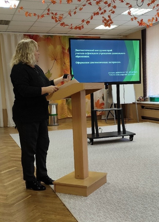 Учитель-дефектолог ГУО "ВГЦКРОиР" Цурганова Татьяна Александровна выступила на тему "Диагностический инструментарий учителя-дефектолога. Оформление диагностических материалов".