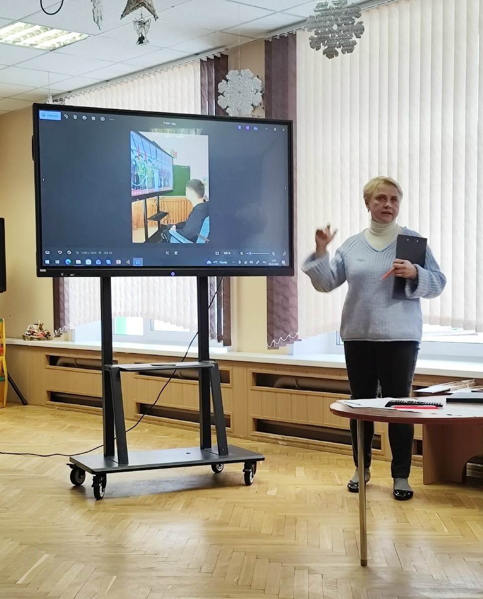 Открыла педагогический совет заместитель директора Корнилова Ольга Владимировна. Она осветила вопрос необходимости создания специальных условий для обучающихся и воспитанников ЦКРОиР посредством использования современного специального и спортивного оборудования. Ольга Владимировна акцентировала внимание на необходимости изучения Постановления Министерства образования Республики Беларусь № 41 "Об установлении перечней мебели, инвентаря, средств обучения, необходимых для организации образовательного процесса", ознакомила педагогов с имеющимся в ЦКРОиР современным и спортивным оборудованием, осветила новинки, приобретённые в декабре 2025 года и анонсировала оборудование, которое в ближайшее время будет доставлено в центр.