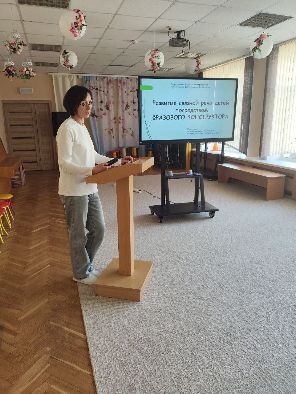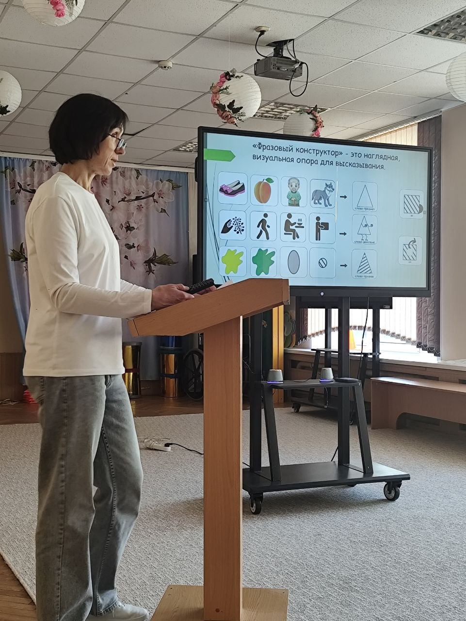 Сальникова Т.Г., учитель-дефектолог ГУО «Специальный детский сад № 18 г.Витебска» раскрыла особенности развития связной речи детей посредством фразового конструктора